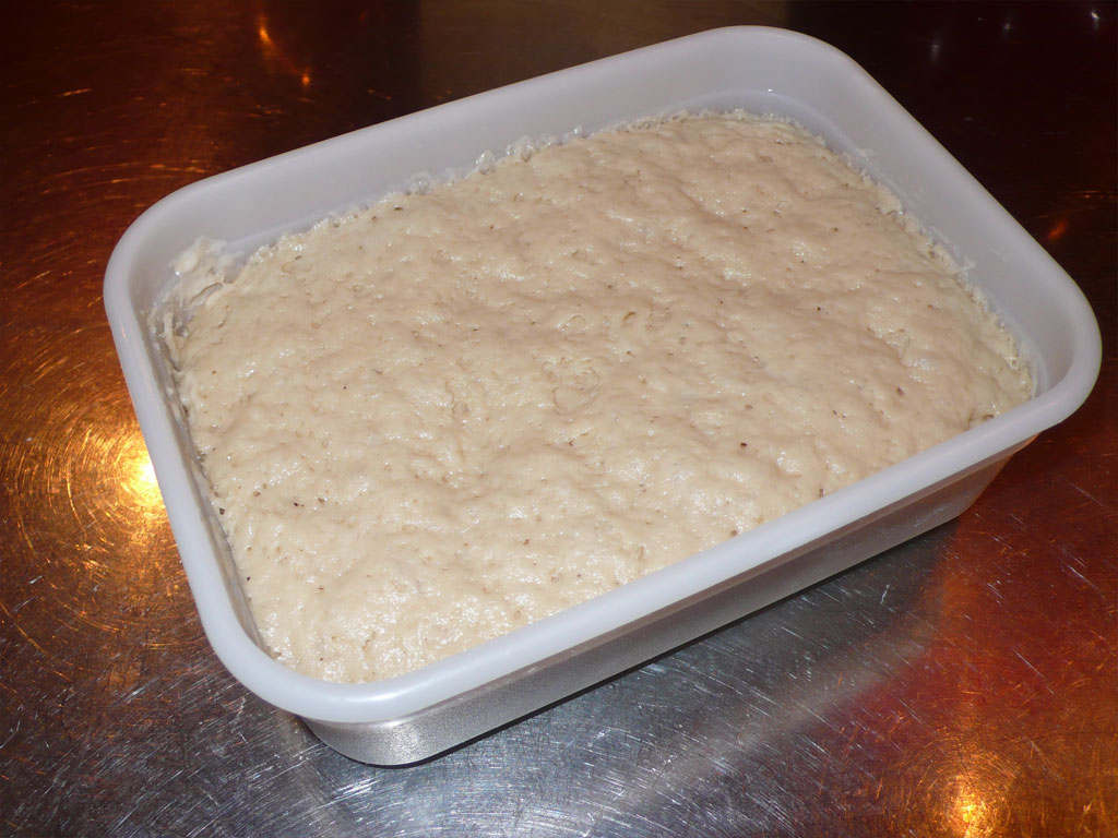 3) Ripetiamo il passo precedente aggiungendo il malto (opzionale) ed il miele. Lasciamo lievitare al caldo finché l'impasto triplica di volume (all'incirca dopo 2 h).
